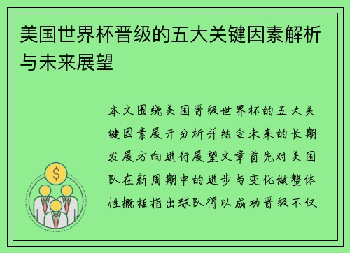 文章摘要:中国足球,经过多年的沉寂与低谷期,近年来在亚洲范围内展现出强劲的崛起势头。随着改革逐步深化、国家政策支持的加码以及本土足球联赛的逐步发展,中国足球正迈向成为亚洲一流的目标。本文将从五大关键因素入手,详细解析中国足球崛起的路径。这五大因素分别是:青训体系的完善、国家政策的推动、国内联赛的繁荣...